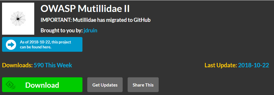 下载地址:https://sourceforge.net/projects/mutillidae/