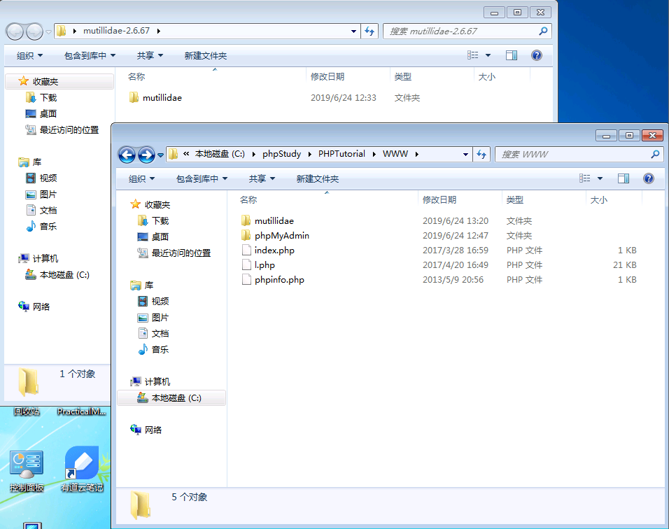 将下载好的mutillidae文件复制到phpStudy安装目录下的WWW目录下