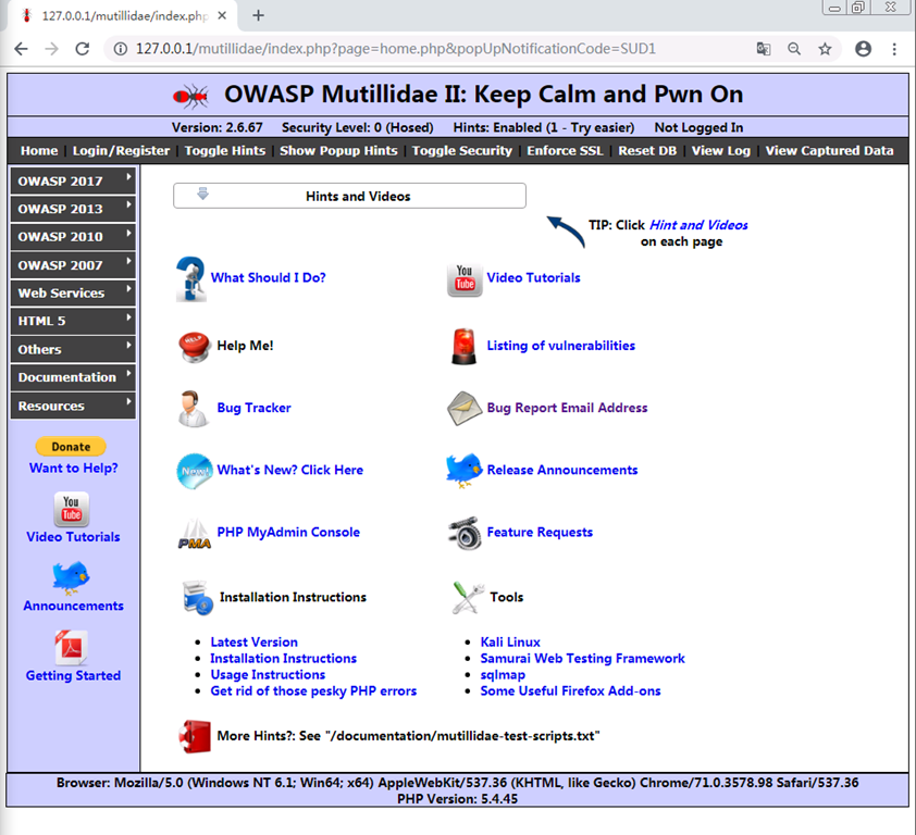 本地浏览器访问http://127.0.0.1/mutillidae/