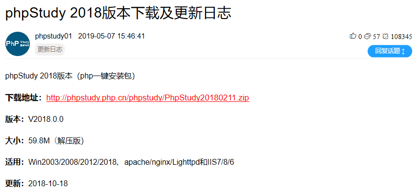 下载地址:http://phpstudy.php.cn/phpstudy/PhpStudy20180211.zip