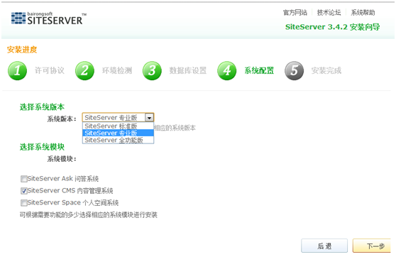 在选择搭建“中国企业文化建设先锋网”的CMS时,发现网上适合PHP+MySQL环境的系统反而多些,.NET+SQL Server的相对较少。原因不言而喻,后者需要使用微软的产品,收费高。另外,国内几乎没有完全免费的CMS建站系统。OpenWBS算是个特例,完全开源免费,就是不太相信产品的质量。如果非要考虑版权的问题,建议选用国外的Drupal或是WordPress。尤其是Drupal,在全球的声誉都不错,WordPress是个个人信息发布平台,可能不台适合企业网站的建设。SiteServer CMS也是收费的,其官网上说SiteServer CMS未经授权是不能商用的,但我安装的3.4.2版本,安装协议中说标准版可以商用,但必须在网站底部保留Powered By SiteServer。
