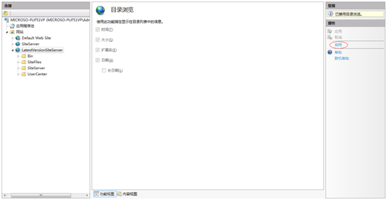 第二个问题是网站运行是提示“Web服务器被配置为不列出此目录的内容”。这个问题是因为网站运行时找不到默认的首页文件,而配置时又不列出网站目录。解决方法是双击网站的目录浏览,点击右侧的启用。