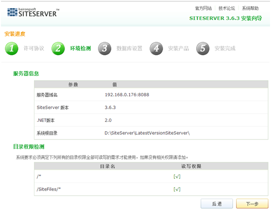 (5)虚拟主机的文件夹权限。前面提到过,SiteServer安装时需要对文件夹执行写入操作,所以文件夹的权限必须保证。好在,无论是在本地还是在虚拟主机中安装CMS,都未出现权限的问题。可能是自己多虑了。