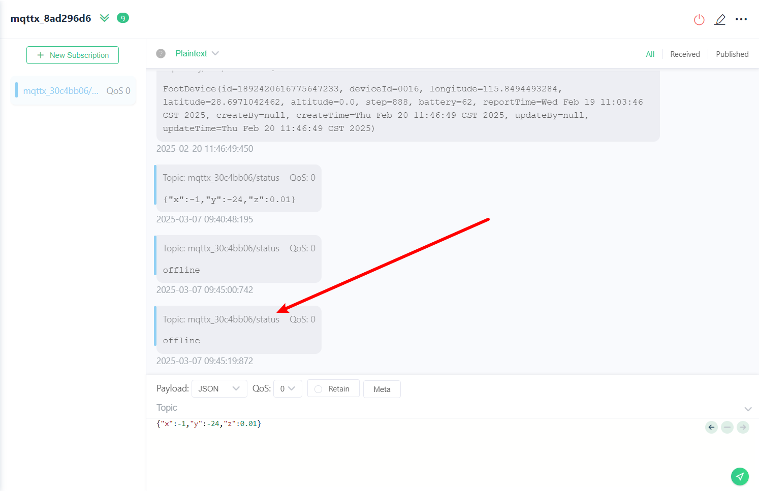 2、消息发布后才上线的客户端可以收到最新一条的保留消息