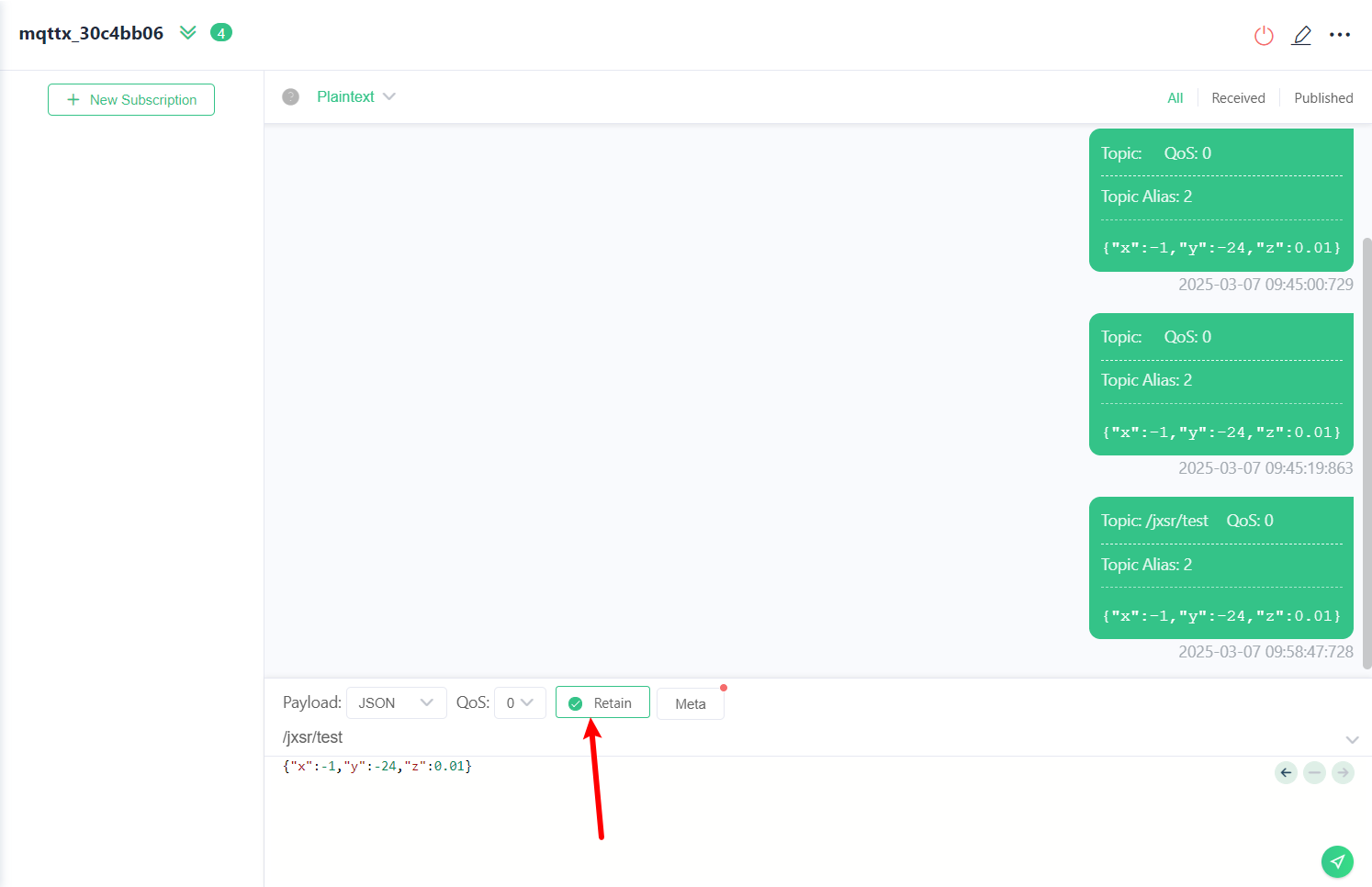 1、发送保留消息