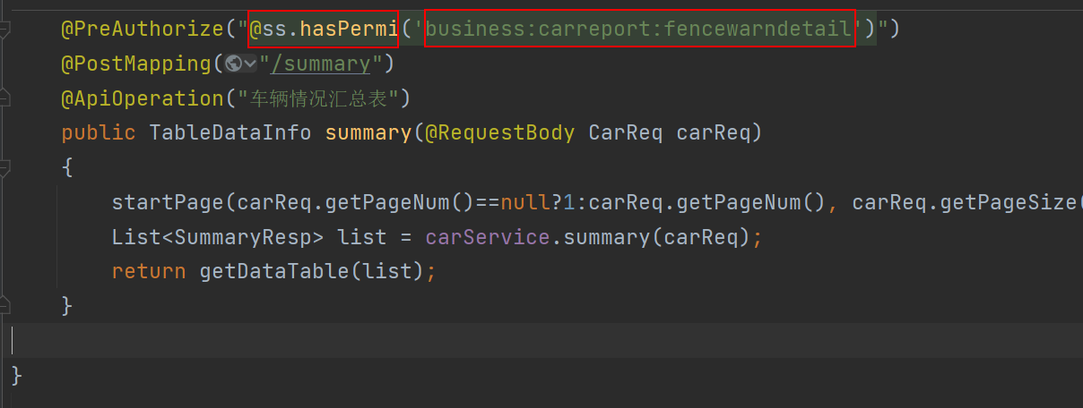 b. 将接口传递的字符串参数与上述查询的菜单权限列表进行比对,看是否包含于该列表中