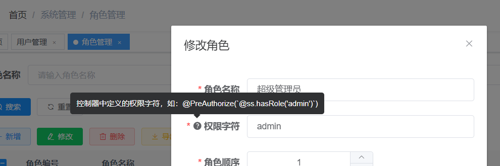 所以也就是说,前端在创建新的菜单时,其实这个权限字符是必须的,且最好与后端接口约定好,但这也是前后端沟通的麻烦之处!