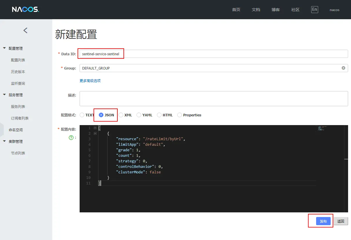 下面我们介绍下如何将配置规则进行持久化,以存储到Nacos为例。