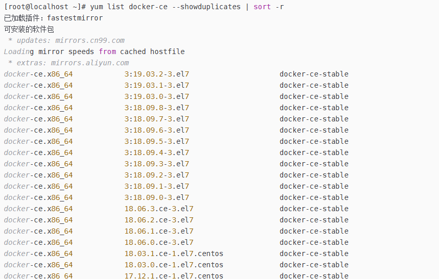 4、安装就是 yum install docker-ce-版本号 比如( yum install docker-ce-18.06.3.ce)