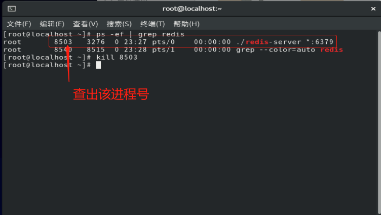2)kill pid 或者 kill -9 pid(不考虑是由有数据正在操作,直接关闭。先使用ps -ef | grep redis查出进程号,再kill pid)
