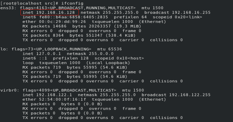 通过ifconfig指令找到Linux虚拟机的IP地址