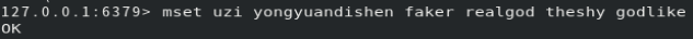 9)mset key1 value2 key2 value2...:同时设置一个或多个key-value对