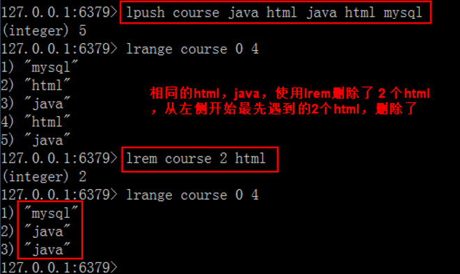 3)lrange key start stop:获取列表 key 中指定区间内的元素