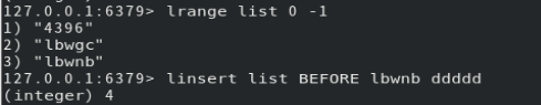 8)linsert key BEFORE|AFTER pivot value:将值 value 插入到列表 key 当中位于值 pivot 之前或之后的位置。key 不存在,pivot 不在列表中,则不执行任何操作
