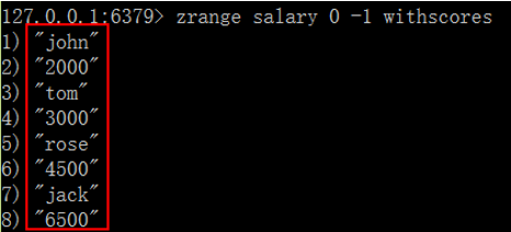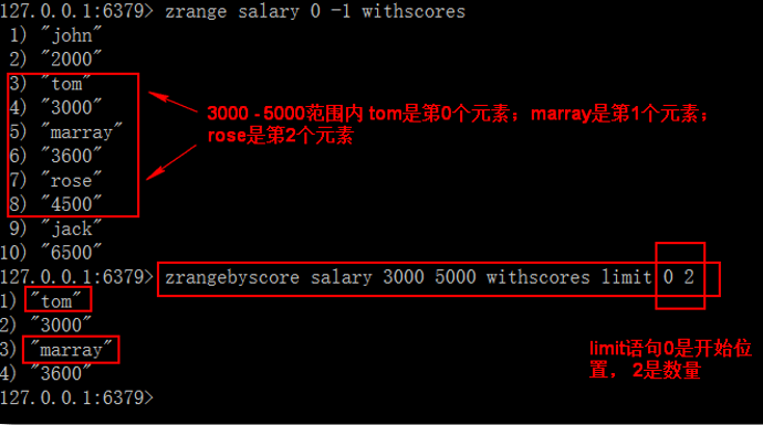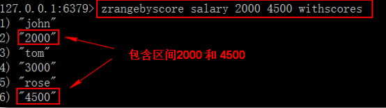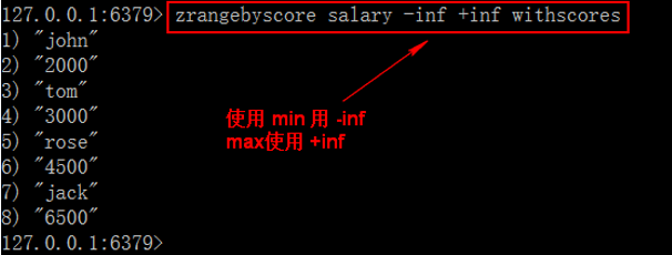 6)zrangebyscore key min max [WITHSCORES ] [LIMIT offset count] :