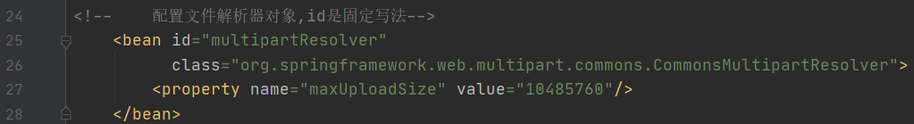 解决办法:检查SpringMVC.xml文件中文件解析器对象配置,格式参照下图,注意:id是固定的,不能随意更改