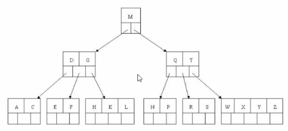 5、每个非叶子节点由n个key与n+1个指针组成,其中[ceil(m/2) - 1] < n < m-1