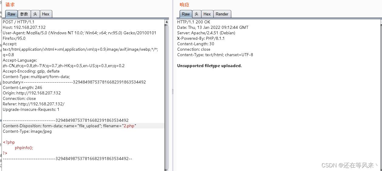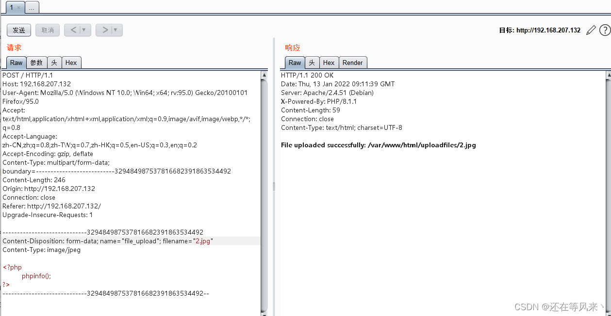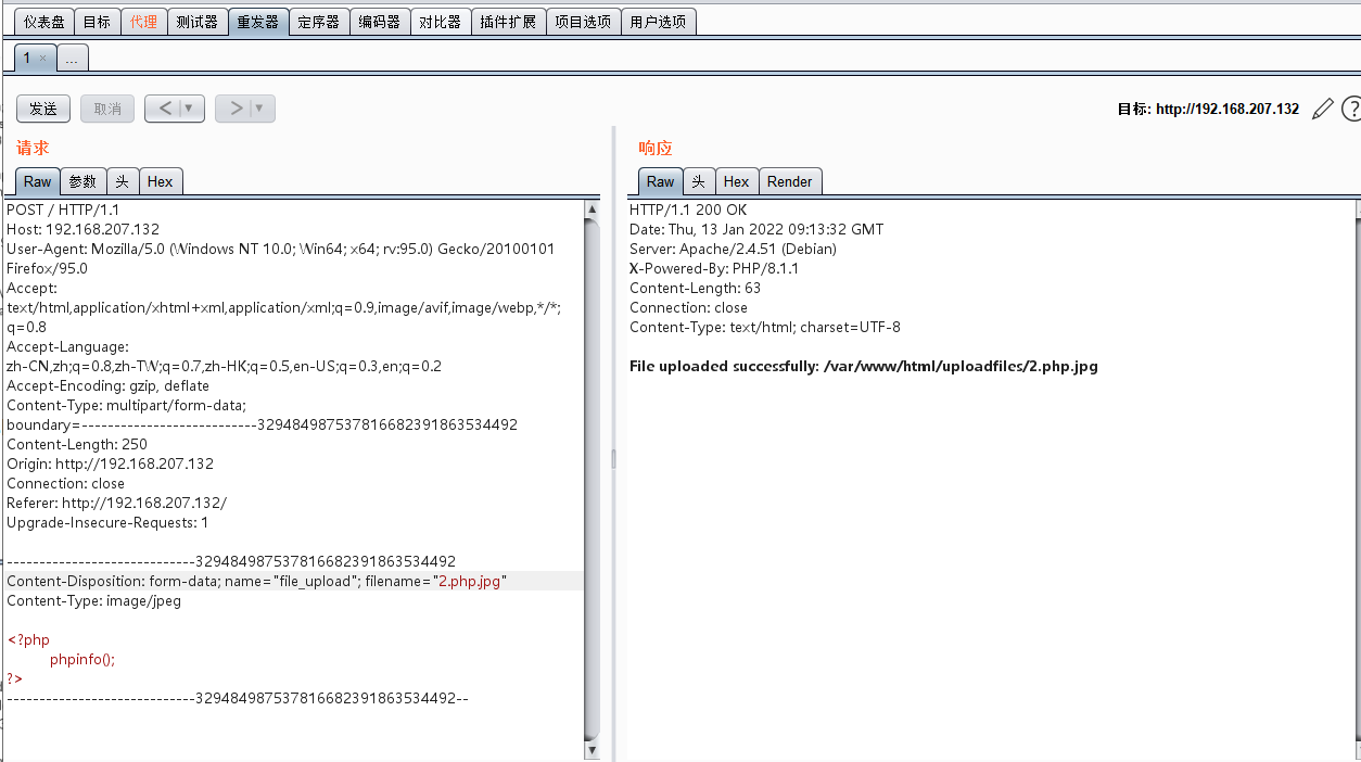 (2) 打开漏洞环境,上传文件,并且利用burpsuite抓包。