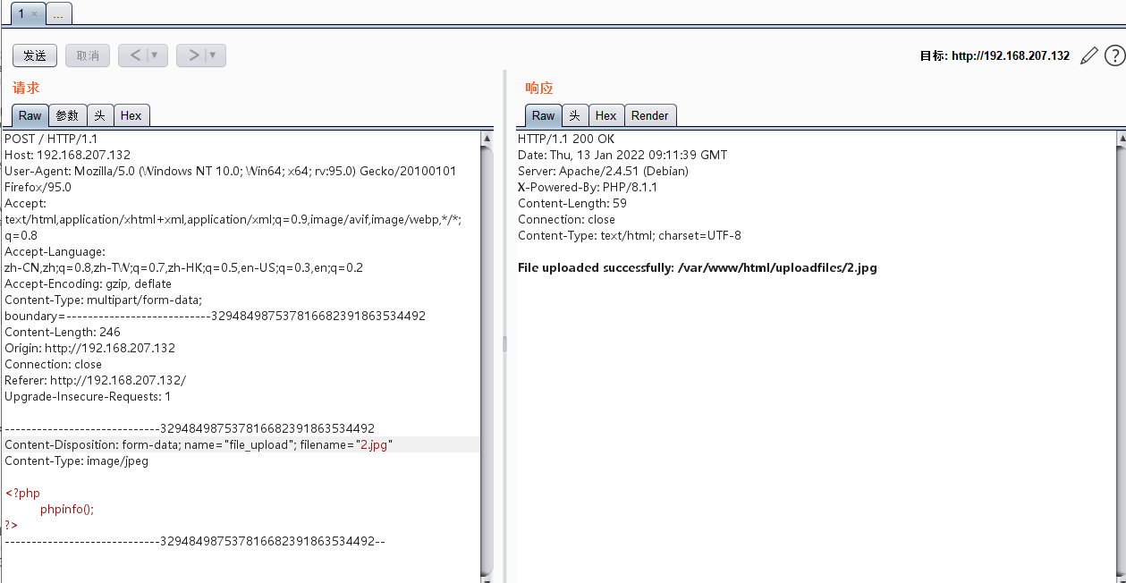 (4) 将.php文件后缀再加一个.jpg的文件后缀进行绕过
