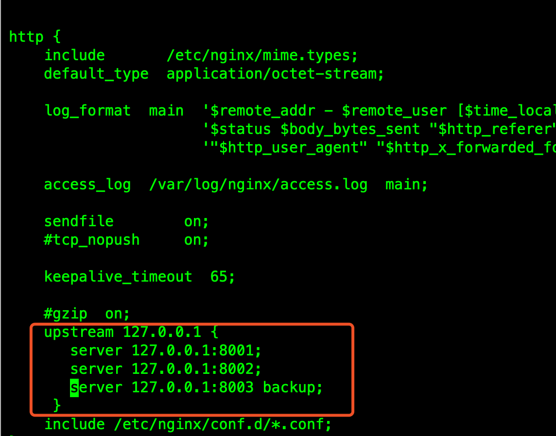 server 10.0.0.8:80 weight=1 max_fails=3 fails_timeout=20s backup;