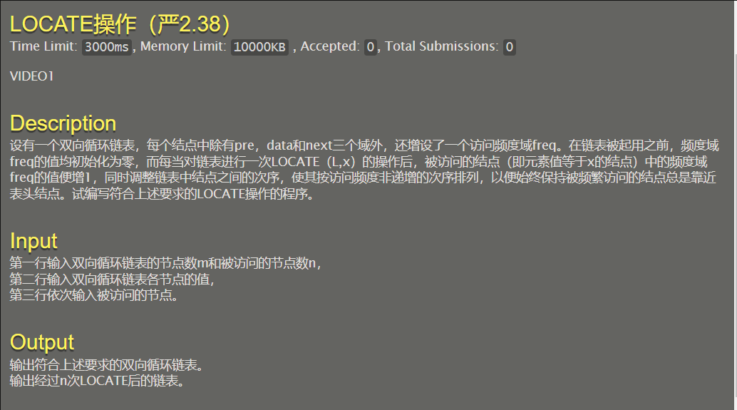 这道题的思路很直观。创建循环双链表、填充数据、根据被访问节点增加访问数、根据访问量进行排序、输出即可。