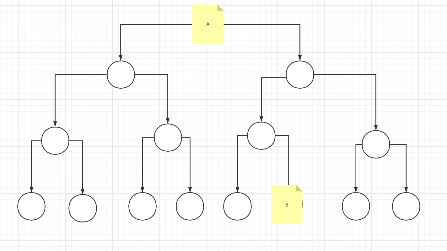我们可以看到,在每一个岔路口,都只有向左向右两种方向,那么DFS则是先一条路走到低。