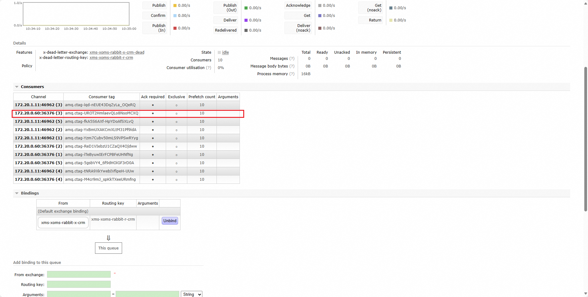 由于Pod连接RabbitMQ是短连接,请求完成后就CLOSE掉了,我们无法通过netstat或ss命令来查找到对应的连接信息。