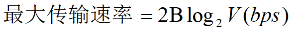 其中: V为信号的电平级数,在二进制中,仅为0、1两级。即:以每秒高于2B次的速率对线路采样是无意义的,因为高频分量已被滤掉,无法再恢复。