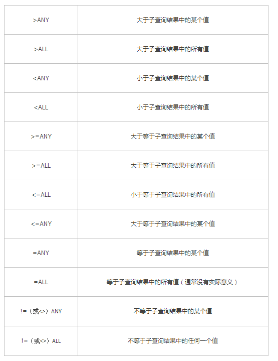 带有比较运算符的子查询是指父查询与子查询之间用比较运算符进行连接。当用户能确切知道内层查询返回的是单个值时,可以用 >、<、=、>=、<=、!=、或<>等比较运算符。