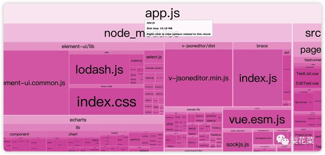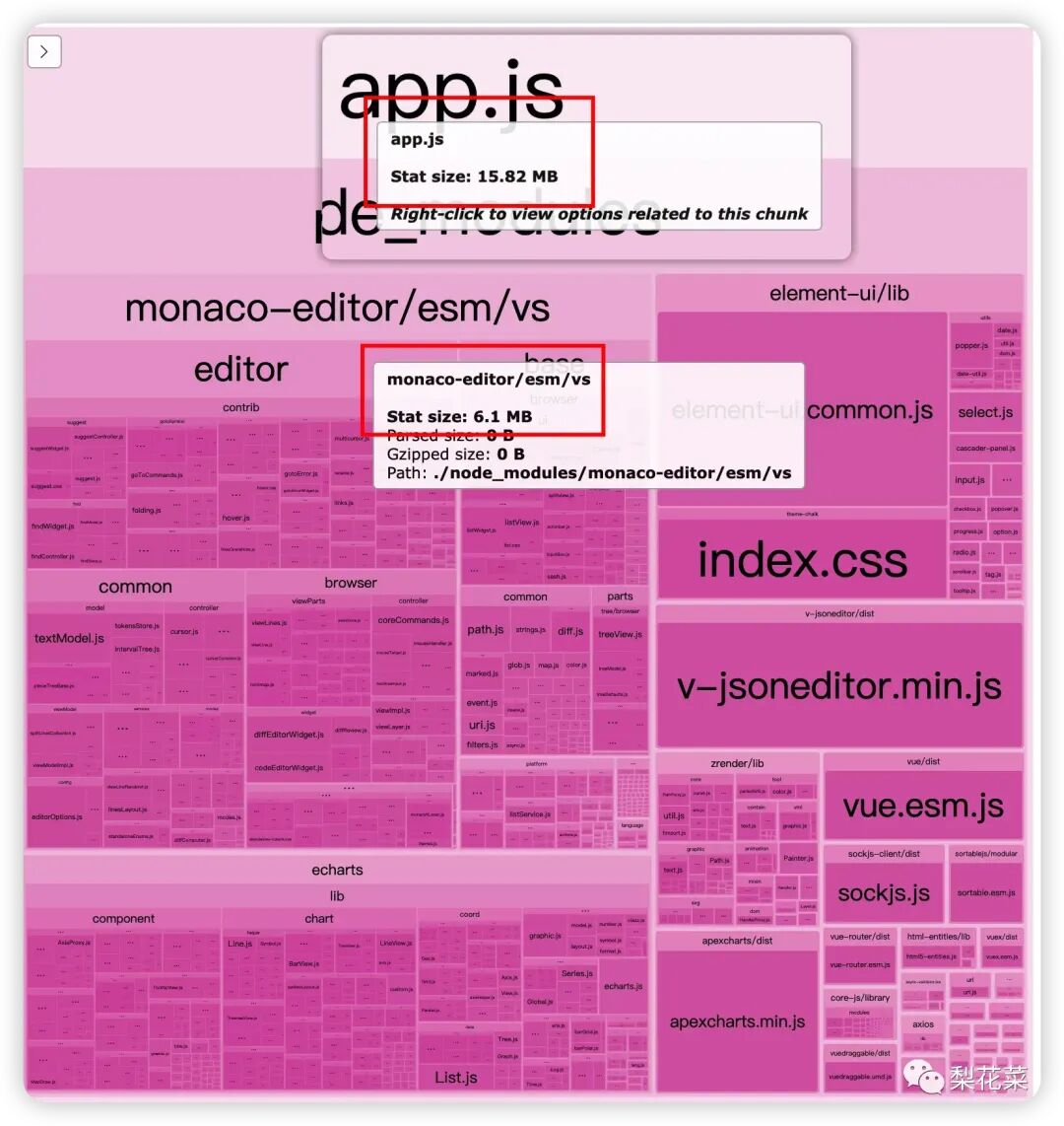 看看webpack-bundle-analyzer,app.js从15.82MB降低到了10.19MB,降低5.63MB