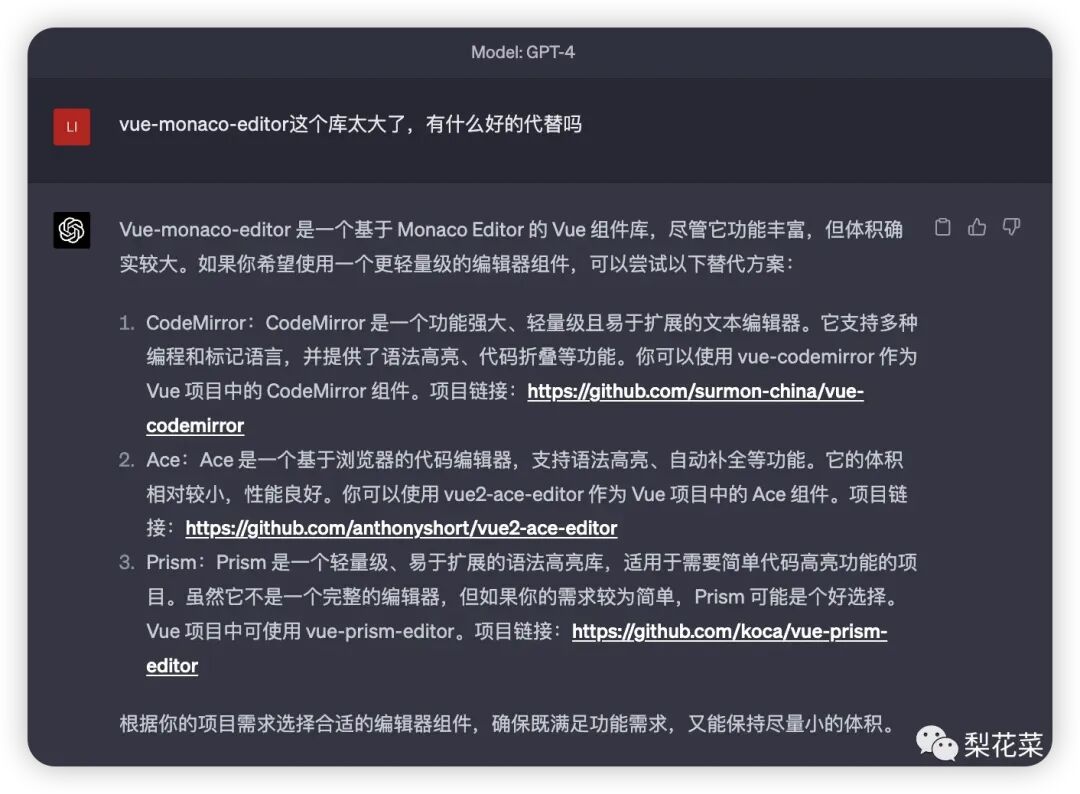 所幸CodeMirror翻车后,还有plan B,那就Ace,看ChatGPT的回答,应该更加符合这次的需求