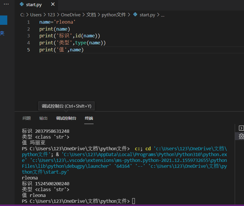 3)值:表示对象所储存的具体数据,使用print(obj)可以将值进行打印输出