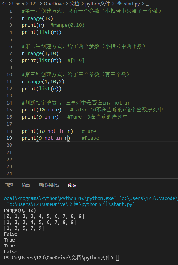 4.range类型的优点:不管range对象表示的整数序列有多长,所有range对象占用的内存空间都是相同的,因为仅仅需要储存start.stop和step,只有当用到range对象时,才会去计算序列中的相关元素。