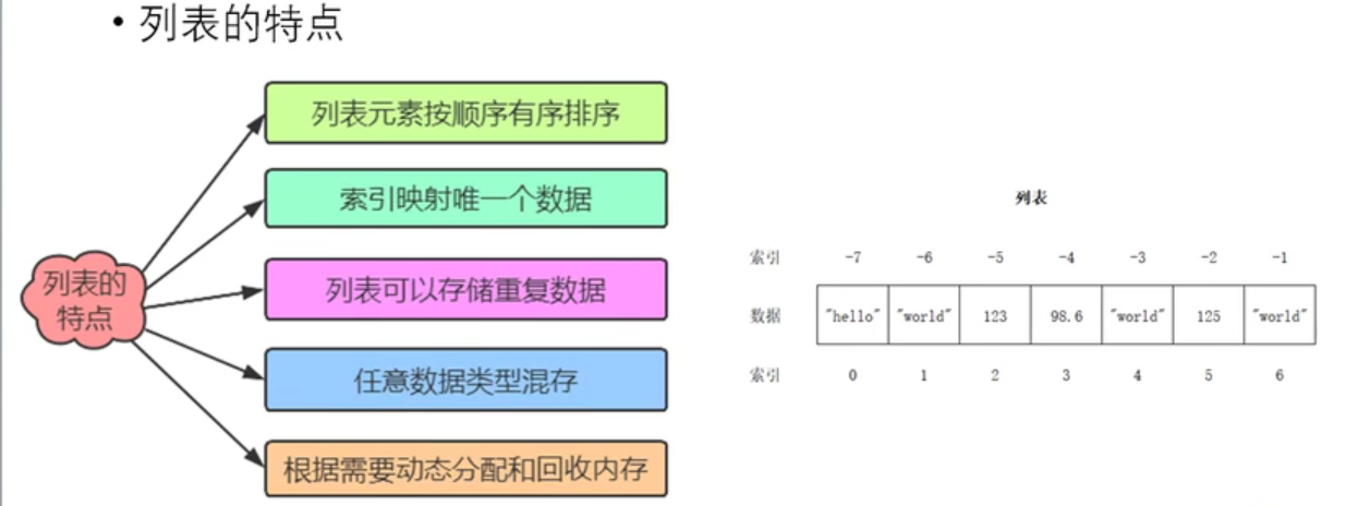 1).列表需要使用中括号[],元素之间使用英文的逗号进行过分隔