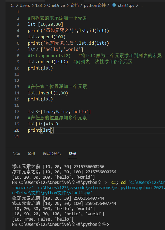 2).列表的创建方式:使用中括号、调用内置函数list()