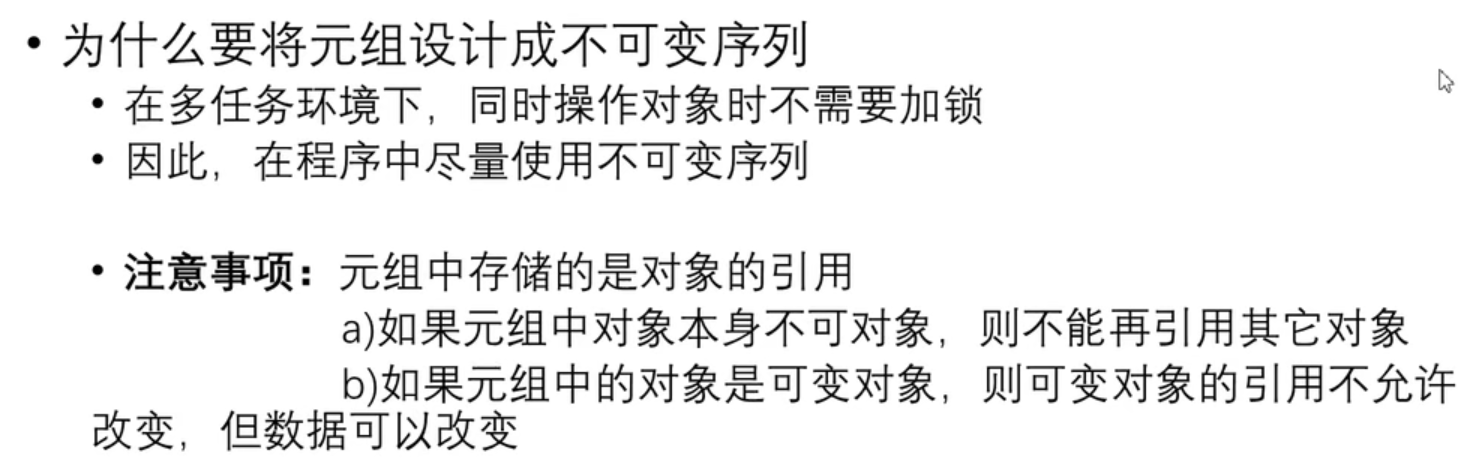 1).不变可变序:字符串、元组,(没有增、删、改的操作