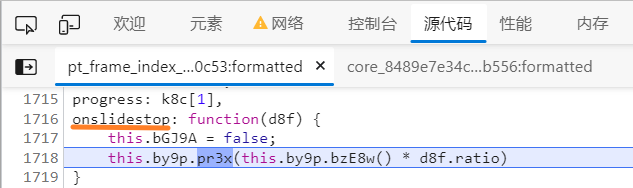 继续向上。 - 以上1134在测试中未被触发,1143所在的1139是点击进度条事件触发,其中d8f是点击事件(另见后文)