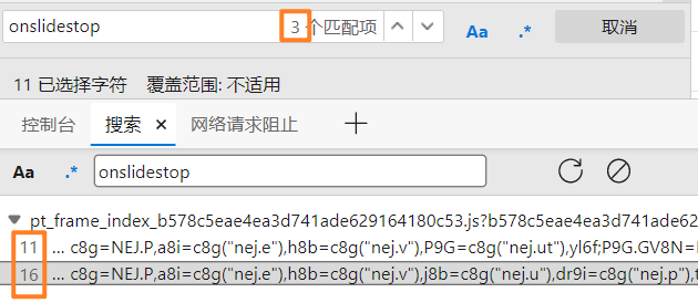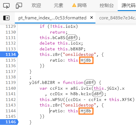 全局搜索onslidestop,发现传入的形参d8f,是外部两处(图1134、1143行)构造的实参(Hj8b)