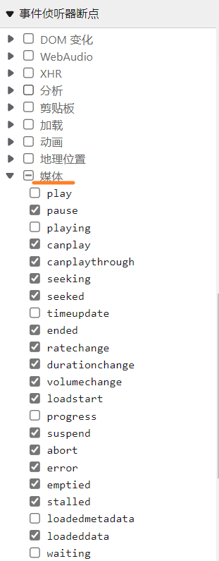 但并未在事件侦听器断点中找到它。不过测试中发现了此事件侦听器断点可以捕获各种事件。![]()