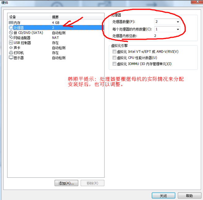 配置处理器, 分配的处理器内核多,虚拟机速度快