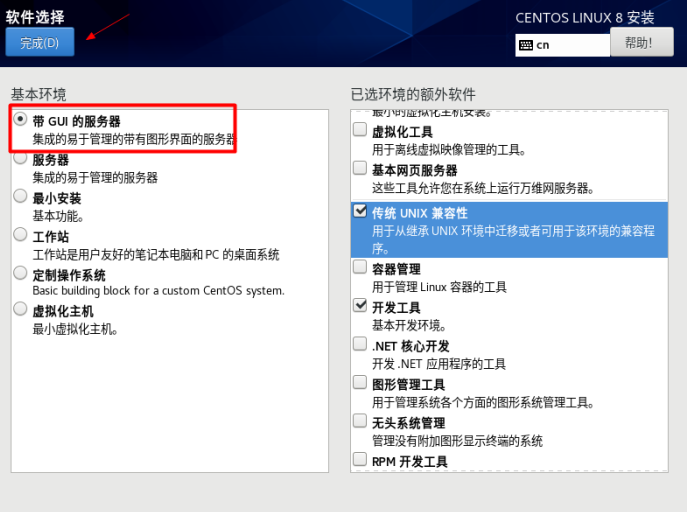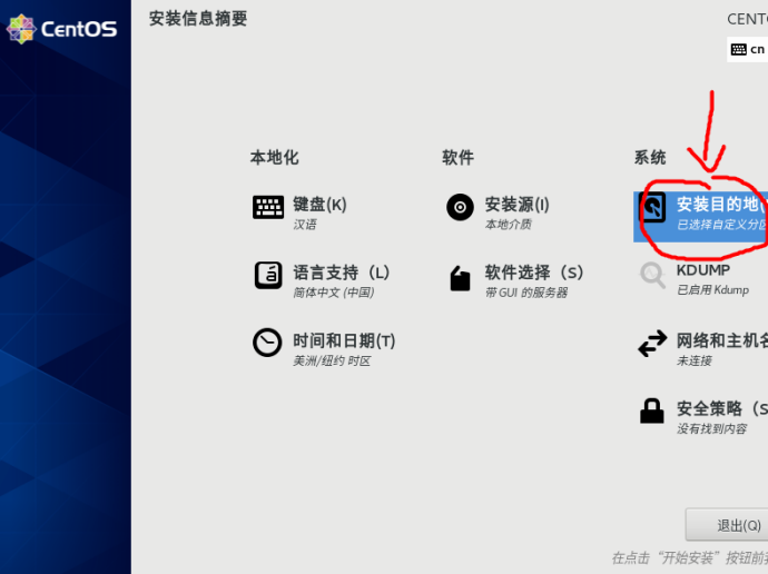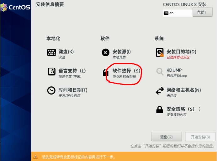 安装说明: Centos8.1/8.2 和 CentOS7 安装几乎一样,只是在选择安装软件包的地方有些不同,我截图说明了.