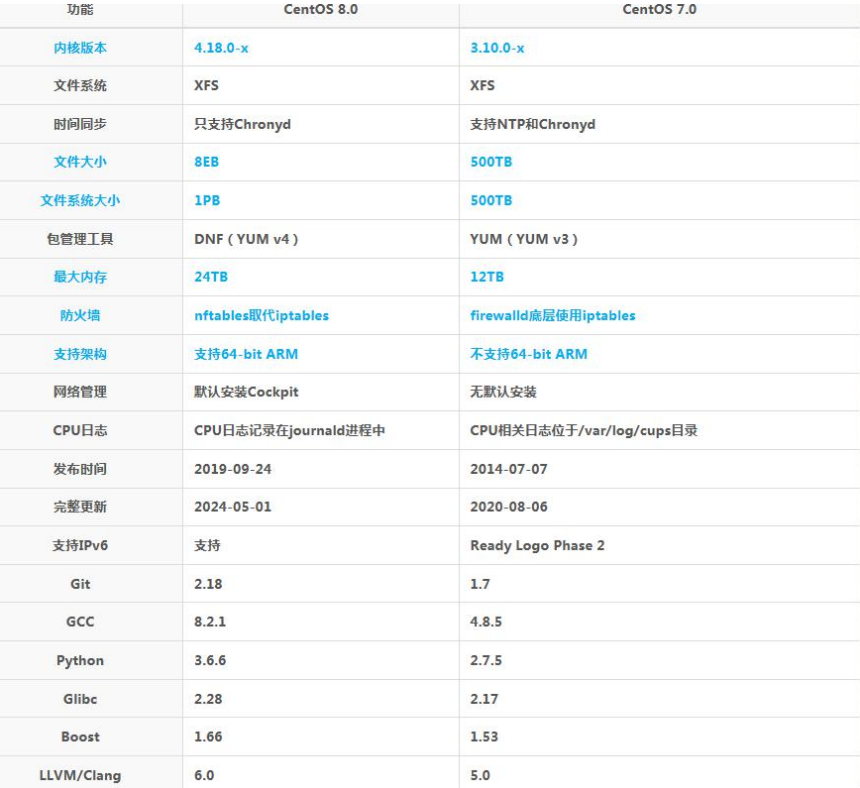 20.2 CentOS8.0 VS CentOS7.0比较(了解)