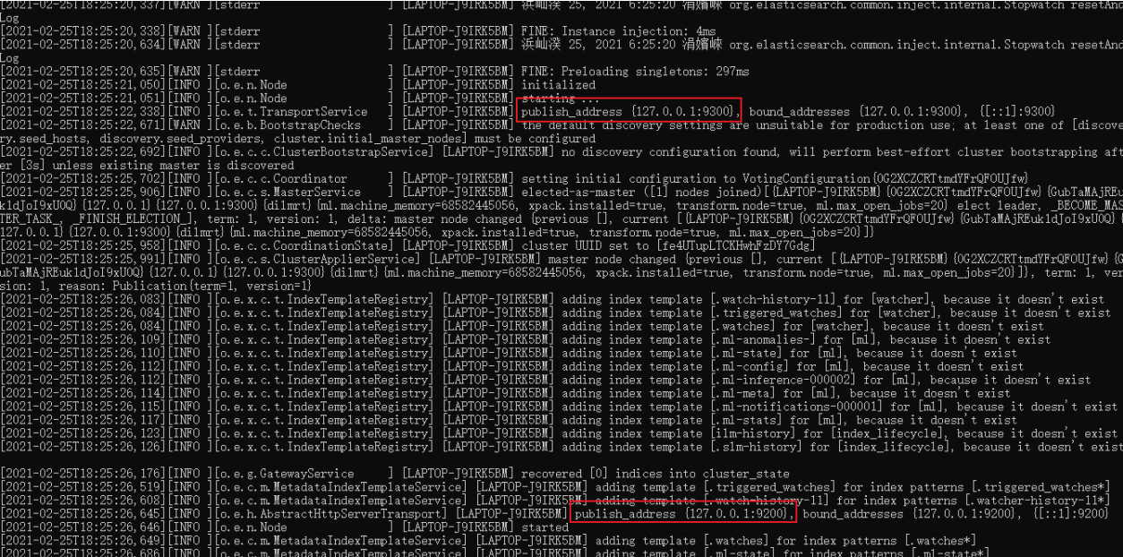注意:9200 端口为 Elasticsearch 的 Web 通信端口,localhost 为启动 ES 服务的主机名