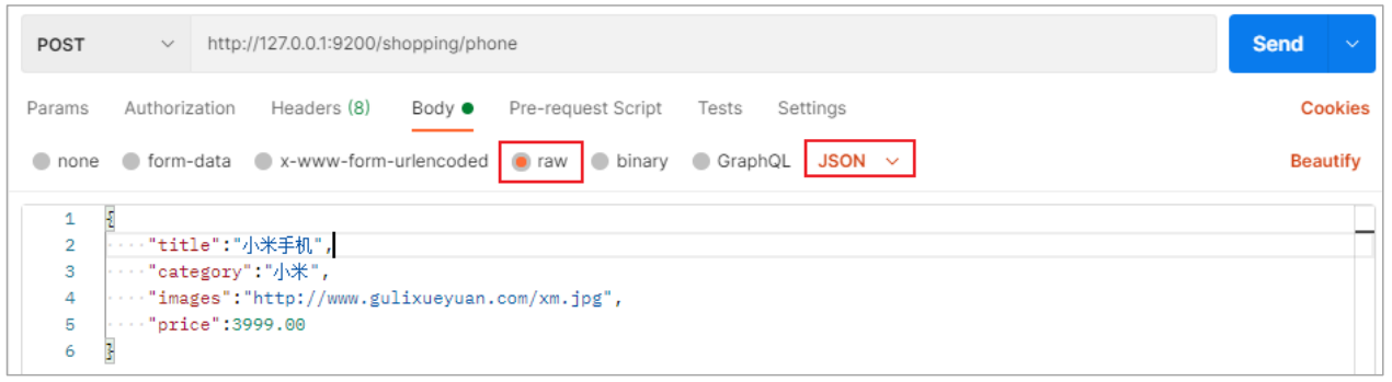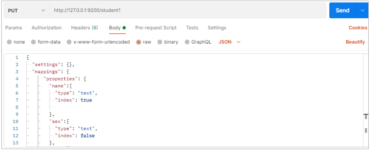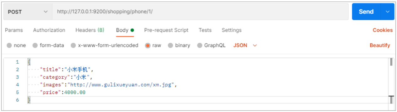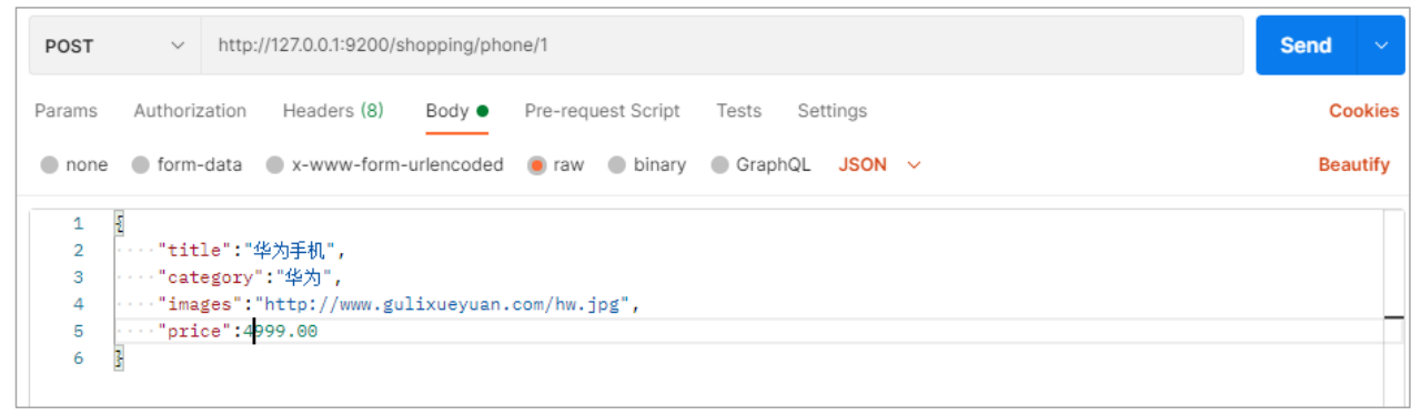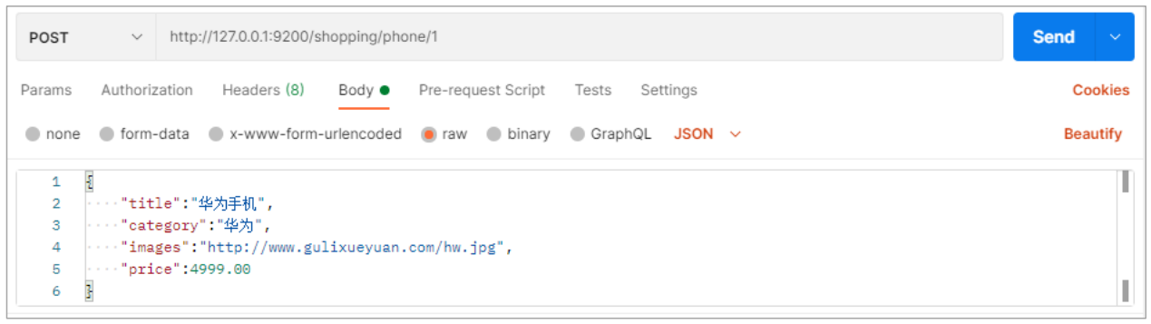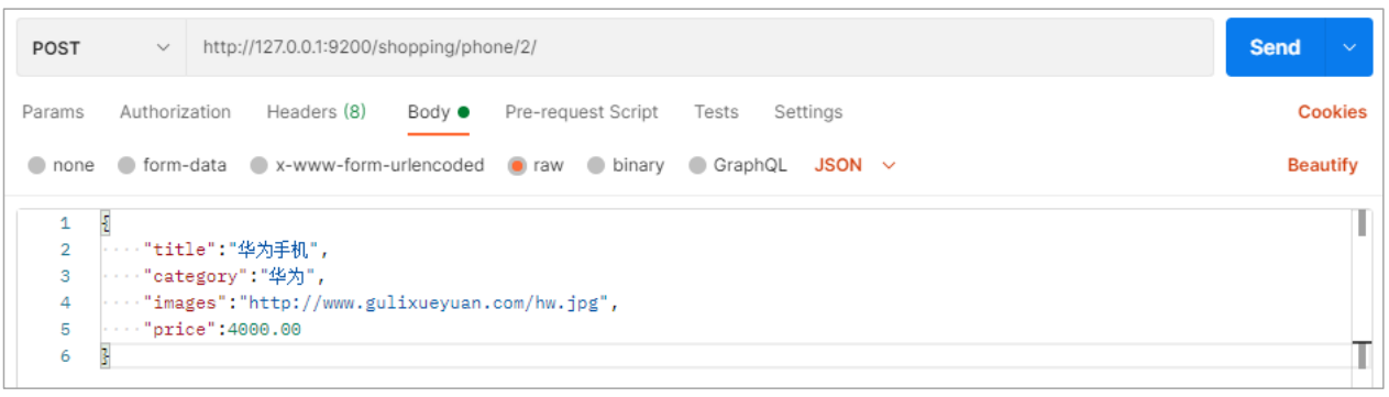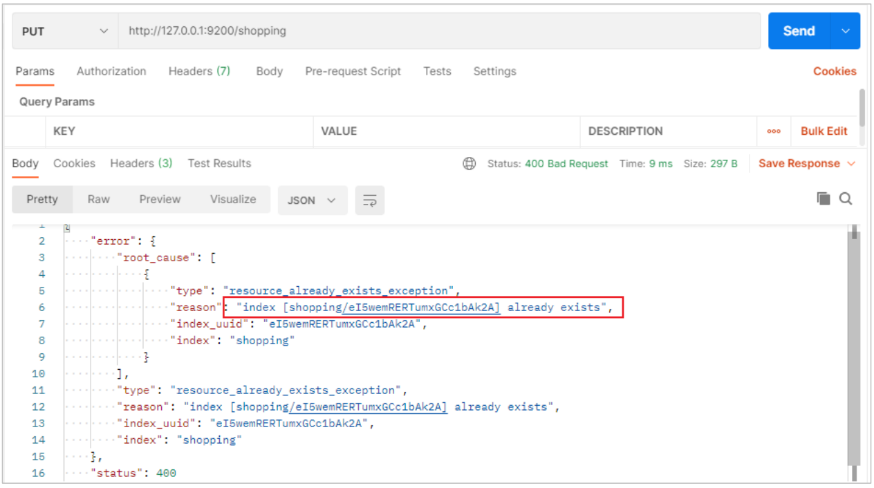 在 Postman 中,向 ES 服务器发 PUT 请求 :http://127.0.0.1:9200/shopping