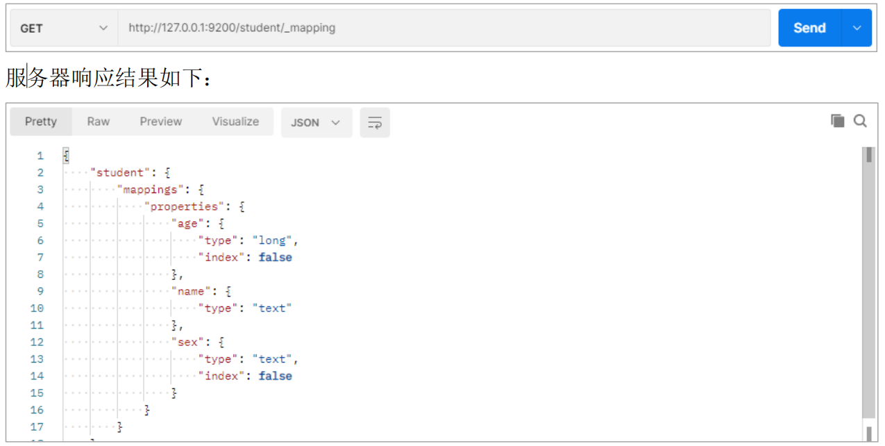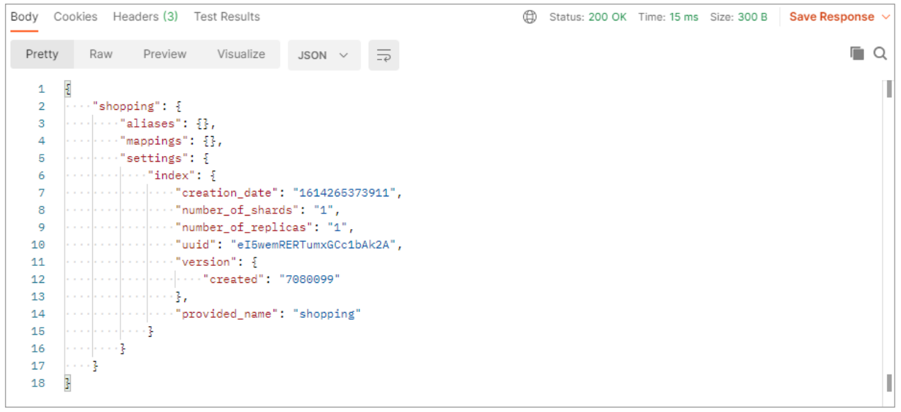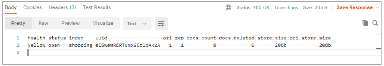 在 Postman 中,向 ES 服务器发 GET 请求 :http://127.0.0.1:9200/shopping