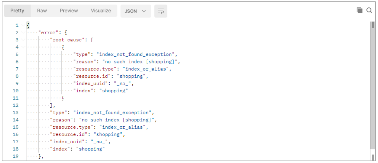 服务器中的所有索引,就好像 MySQL 中的 show tables 的感觉,服务器响应结果如下