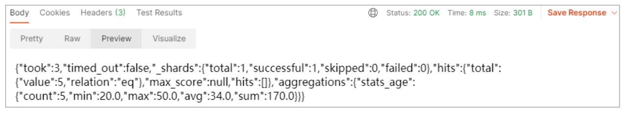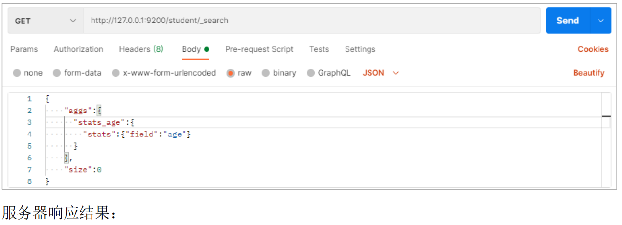 stats 聚合,对某个字段一次性返回 count,max,min,avg 和 sum 五个指标