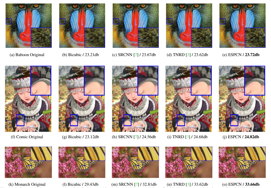 但ESPCN指出,由于SRCNN是在最后一步是重构高分辨率图像块,作为输入是经过双三次插值的,已经高分辨率图像(图像尺寸和HR图像一样),在中间的2个网络相当于在高分辨率空间中进行处理,这增加了运算的复杂度。