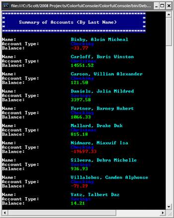 Console.WriteLine("* Summary of Accounts (By Last Name) *");